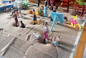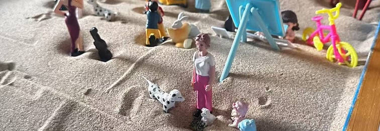 Sandplay is a powerful therapeutic technique that facilitates the mind's natural capacity for healing. In a 'free and protected' space, the client creates a concrete manifestation of their imagination using sand, water, and small miniature figures and objects. They can express thoughts and emotions symbolically, which can be difficult to verbalise.